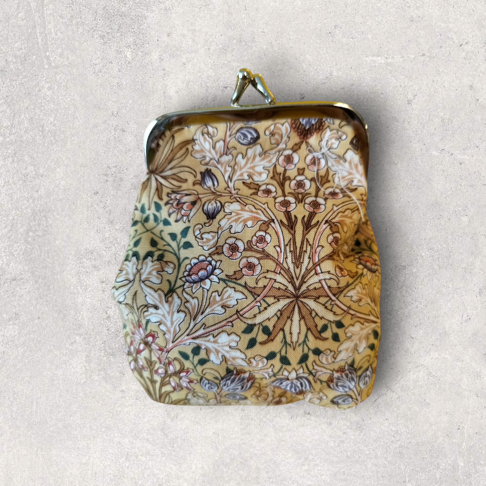 Nipsukukkaro puuvilla vuorella. Kierrätyskankaat, korkeus noin 14 cm, leveys noin 10 cm, pohjan syvyys noin 4 cm.