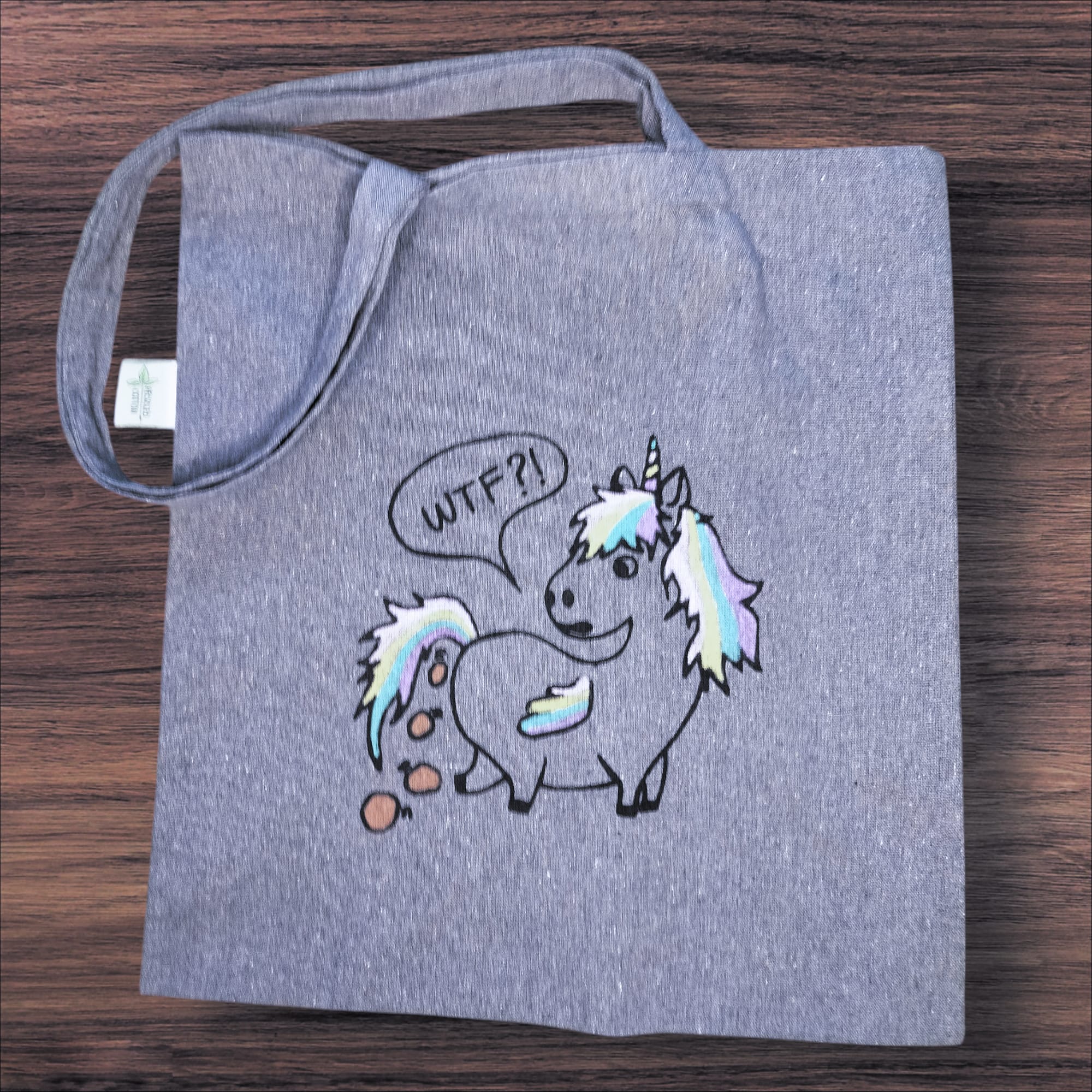 Käsin silkkipainotekniikalla painettu kangaskassi. 100% kierrätettyä puuvillaa eli pinta on ihanan eläväinen, siniharmaa ja kangas on napakka. Väritetty kangastusseilla, värit saattavat vaihdella.